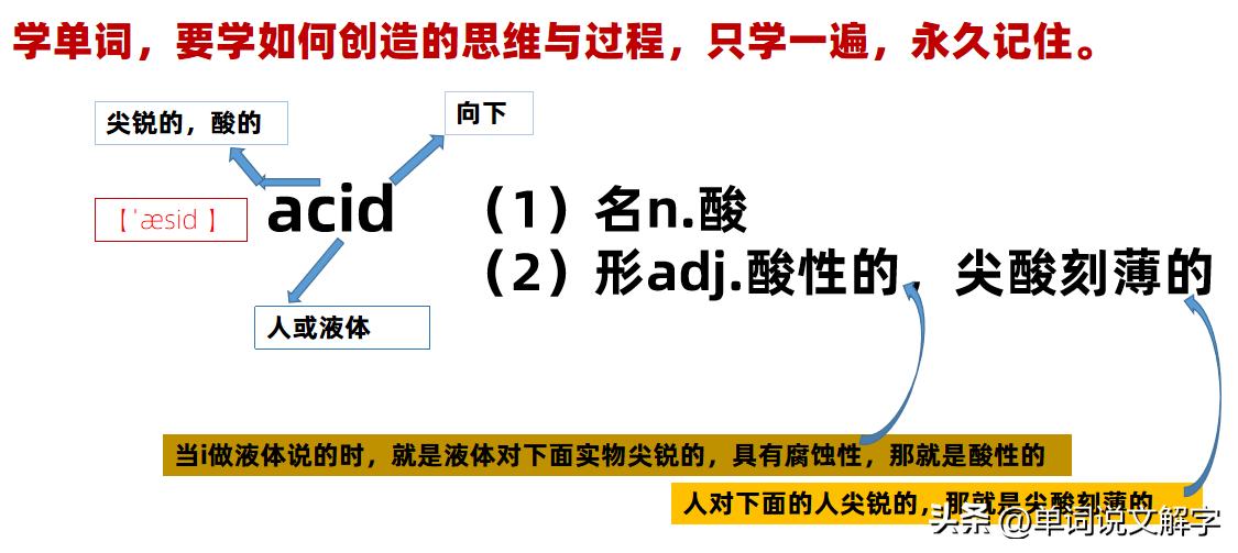 人对下面的人尖锐的,那就是尖酸刻薄的;液体对下面实物尖锐的,具有腐蚀性,那就是酸性的。详解图如下: