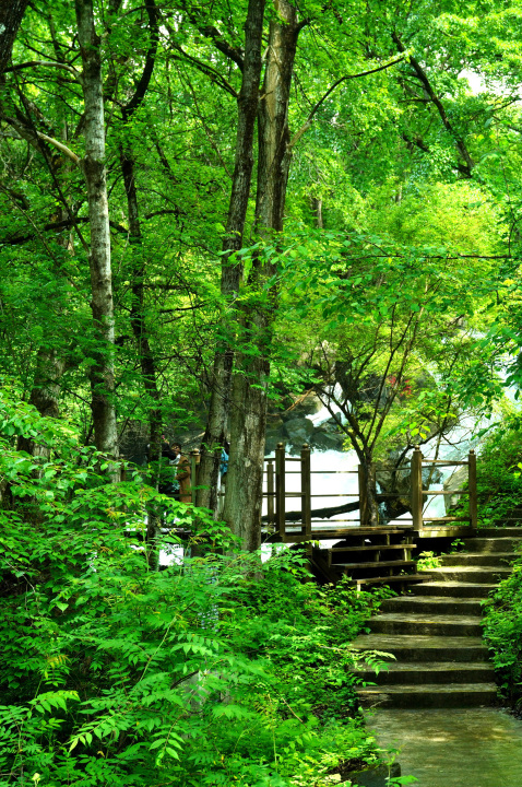山风裹着原始森林的清新拂面而来水汽也携着草木清香沁入心脾体感温度骤降