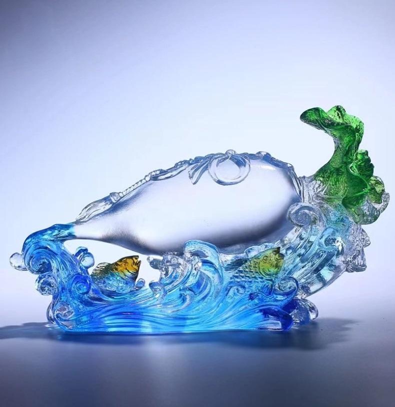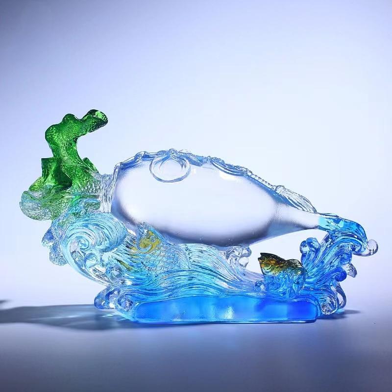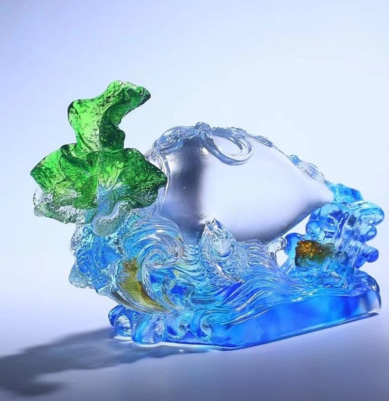 摆件沿用古法琉璃脱蜡铸造工艺,历经选料、塑模、高温烧制、冷工精磨等数十道纯手工工序,千度高温淬炼下,琉璃质地通透温润,摒弃普通玻璃的冷硬单薄,泛着柔和内敛的光泽。每一件成品都独一无二,无重复肌理,承载着非遗手艺的沉淀与匠心坚守,尽显器物本真之美。