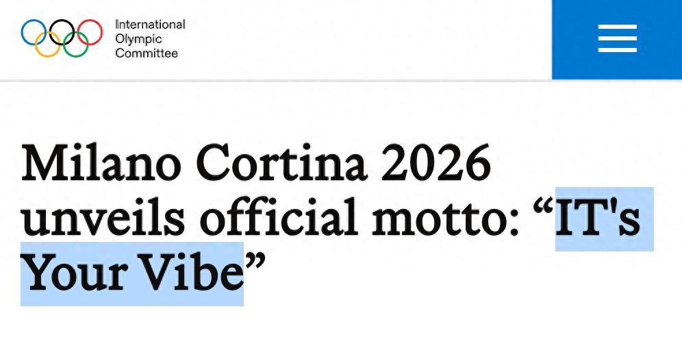 咱们再回到米兰冬奥会的口号:IT’s your vibe.