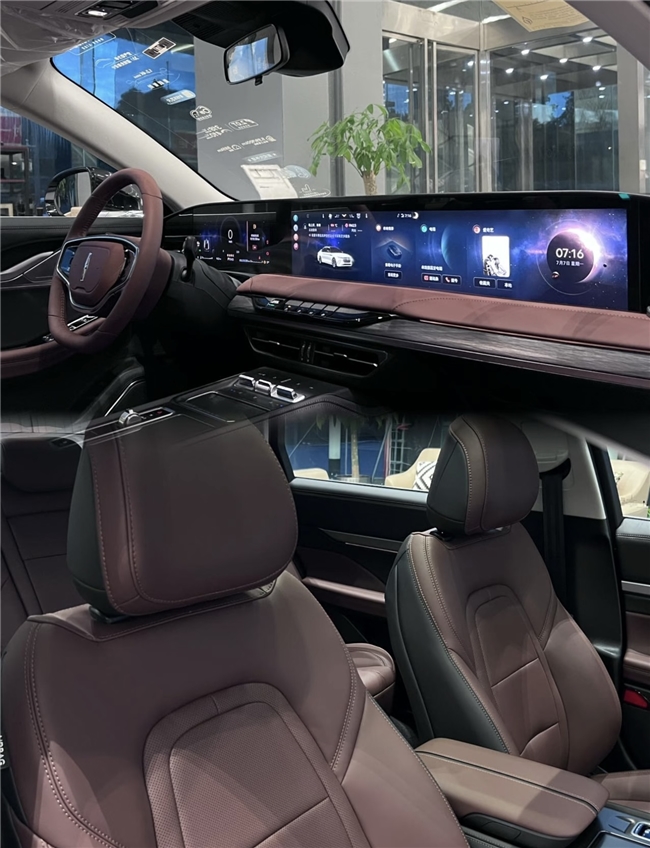 车内部分,奔驰C级是经典的豪华内饰,座椅舒适,布局合理,但科技感稍显平淡。反观林肯Z,12.3英寸全液晶仪表盘与27英寸贯穿式中控屏组成超大屏幕组合,林肯星云车机系统操作流畅,功能丰富。车内大面积的皮革包裹和钢琴键烤漆饰板,质感上乘,再加上3区128色氛围灯,能营造出各种浪漫、温馨的车内氛围,科技与豪华完美融合。