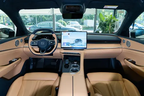坐进极氪001的车内,我立刻明白为什么大家都说它的内饰够顶。整个座舱把豪华感和科技感融合得恰到好处。吸睛的是那块16英寸向日葵中控屏,分辨率达到3.5K,还能左右旋转30度。导航时自动转向驾驶员,副驾想看剧时又能转向乘客,特别懂我。39.3英寸的AR-HUD把行车信息直接投影在前挡风上,开车时不用低头看仪表,安全感满满。再加上13.02英寸的机长仪表和8英寸后排控制屏,四屏联动让全家人都能轻松操作。