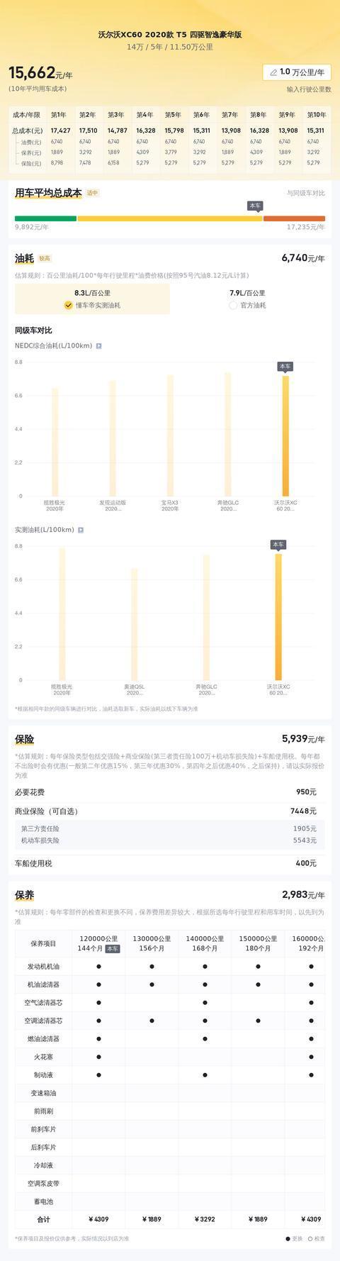 说到沃尔沃XC60 T5的油耗,这也是很多车主关心的问题。根据很多车主的反馈以及一些专业评测,它的综合油耗大概在7 - 8L/100km左右。这个油耗在同级别豪华SUV中算是比较正常的一个水平了。我在网上看到有车主评论说:“本来以为豪华车都很费油,但是沃尔沃XC60 T5完全打消了我的顾虑,这个油耗我能接受,而且它的动力也完全能满足我的日常需求,真的是太实用了。”