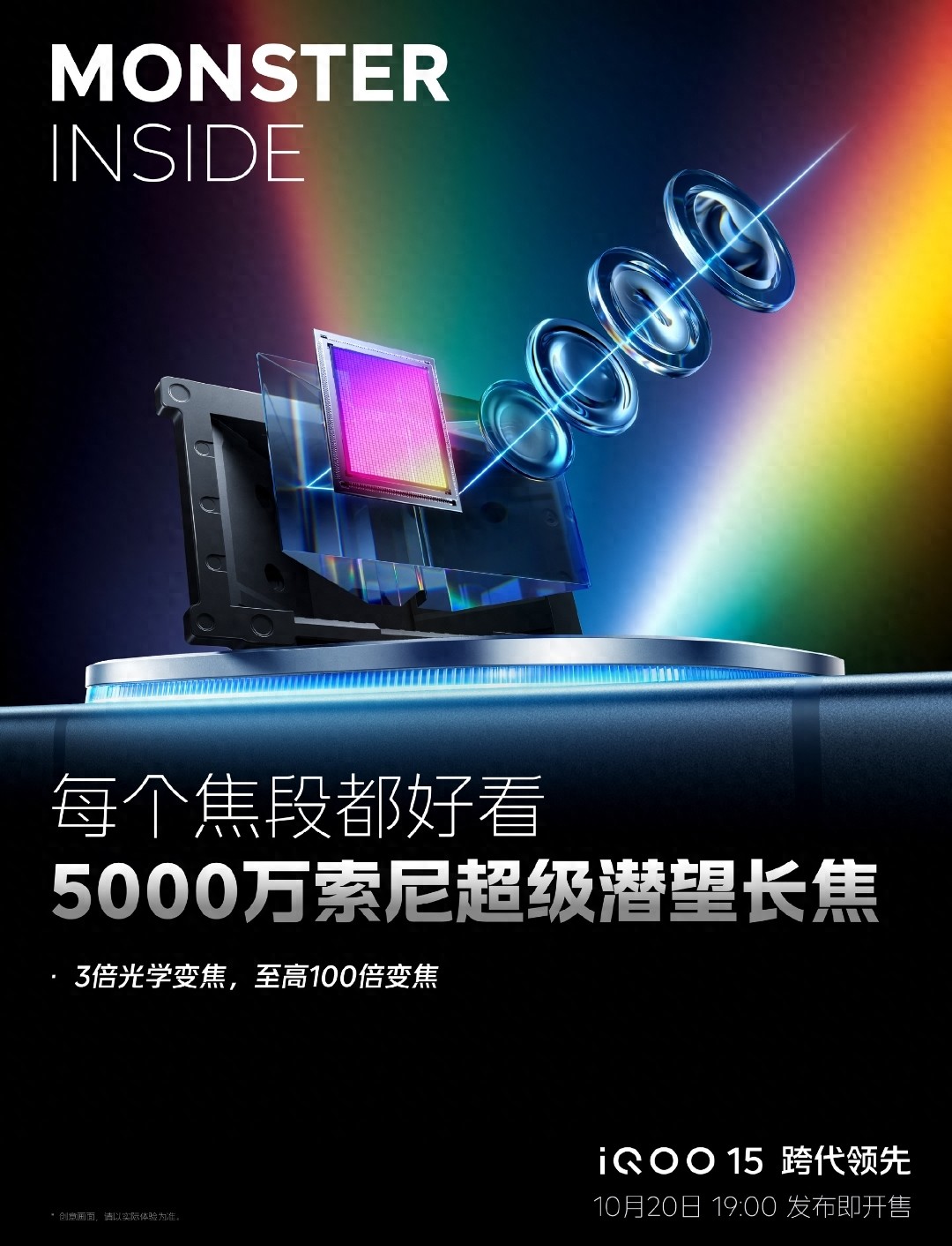 在“性能旗舰”的赛道上,iQOO一直保持领先,但在影像方面,以往的机型似乎总留有一丝遗憾。然而,即将于10月20日发布的iQOO 15,正以“跨代领先”的姿态,宣告它将补齐这最后一块短板。就在今天,iQOO手机官方正式确认,iQOO 15将搭载一颗5000万像素的索尼超级潜望长焦镜头。这一配置的加入,无疑让iQOO 15的影像能力实现了质的飞跃。