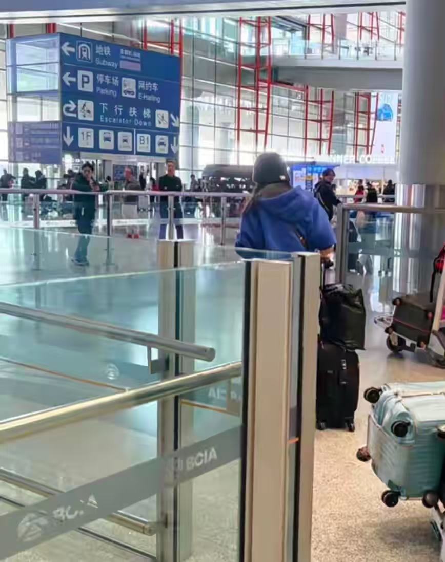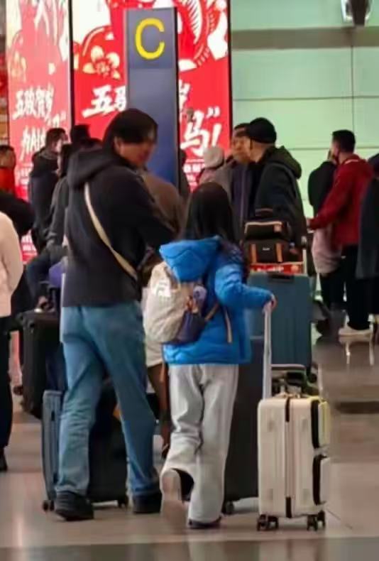 年初二回娘家,远嫁韩国的汤唯在这一天也飞回北京回娘家探亲。她身穿一件蓝色外套,戴了一顶黑色帽子又酷又有气场。汤唯的韩国老公金泰勇带着女儿走在前面,9岁女儿summer也穿了件蓝色外套,背着个白色书包,都快到爸爸肩膀那么高了。