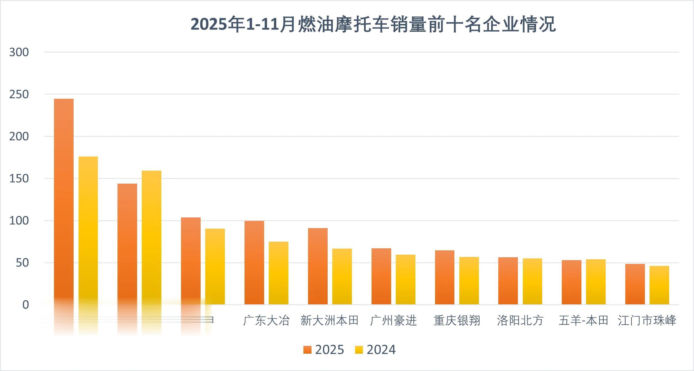 通过横向比较往年11月的数据,今年11月的数据还是不错的,比前两年都要高。这其中有内卷化加剧,各厂家都在打价格战的原因。当然,踏板摩托车销量是主要的,看看那几家头部企业踏板摩托车的数据,就很能说明问题了。