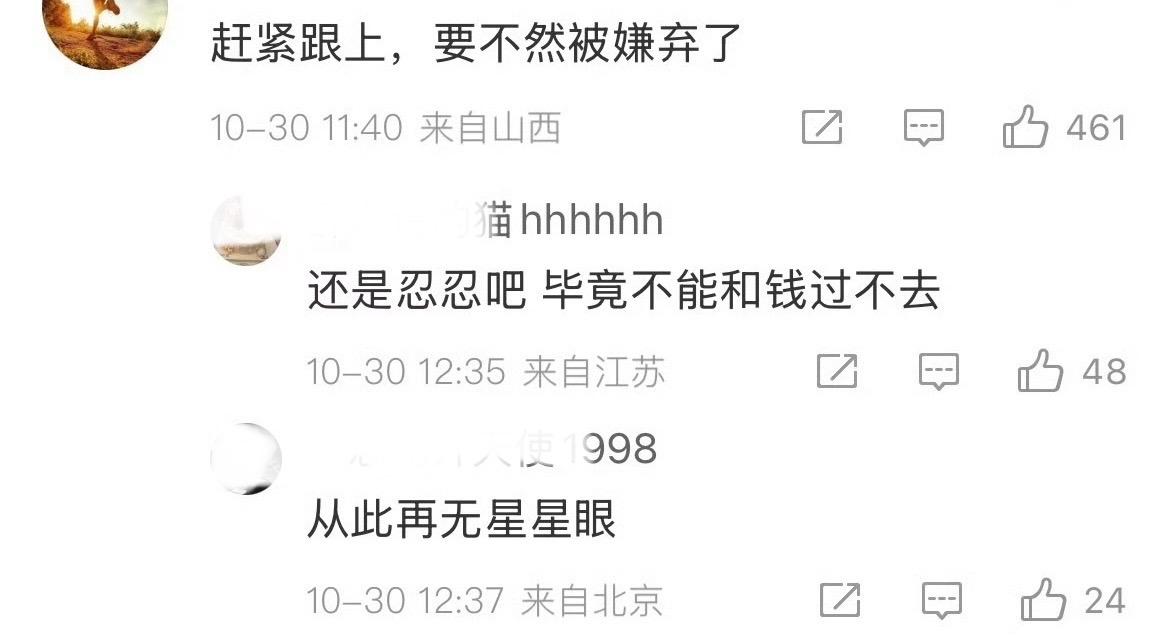 也有网友表示:离开就是看你时眼里不再有星星了。