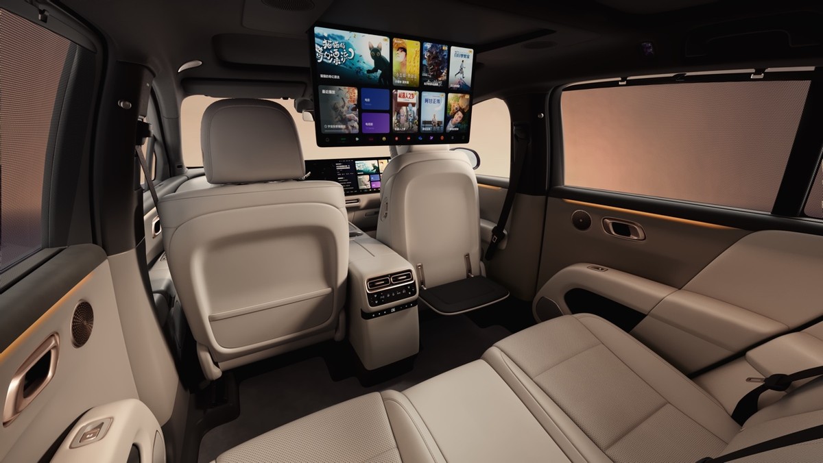 内饰基本沿用了理想i8的设计风格,前排双15.7英寸的3K中控屏和副驾驶屏,支持丰富APP,理想同学也从语音助手变成了理想同学智能体。舒适座椅与越级空间搭配8.8L智能冷暖双用冰箱、后排还配备21.4英寸3K后舱娱乐屏、铂金音响、小桌板、侧窗隐私帘等配置,为用户提供多种空间模式,有吸顶屏的车型采用了全景天幕,并提供电动天幕遮阳帘。