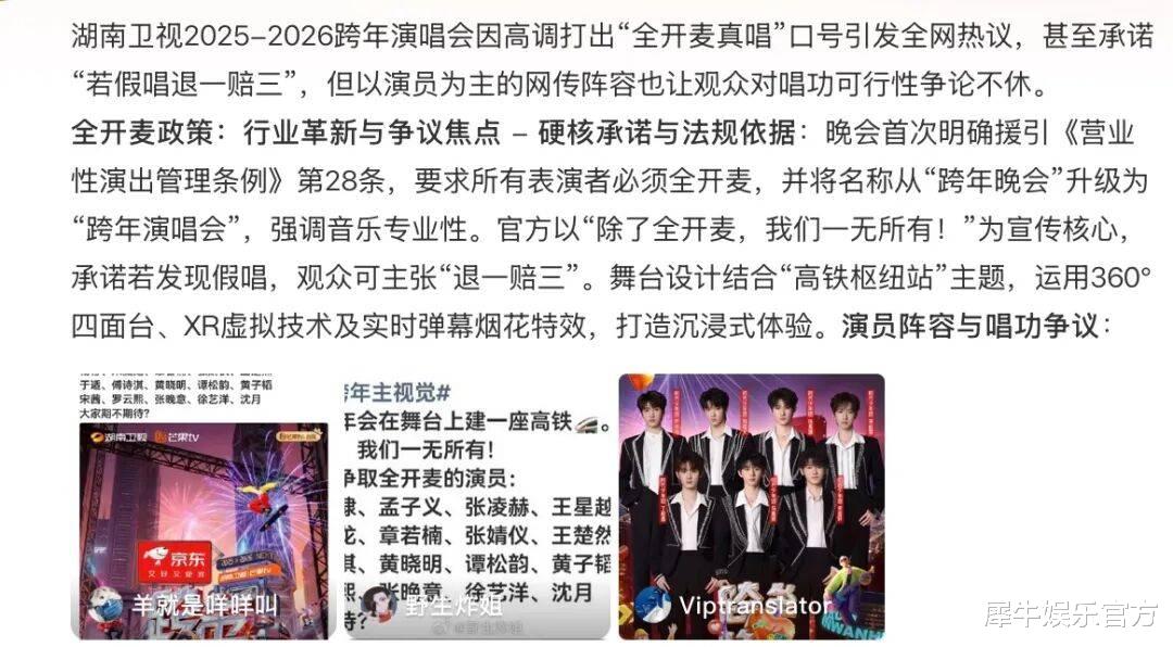 时间就像一头野驴狂奔到了2025年尾,最近网友热议的 #湖南跨年晚会 全开麦#、#R1SE浙江跨晚 结没结婚都来了# 等破圈热搜又把内娱时钟拨向了跨年狂欢。