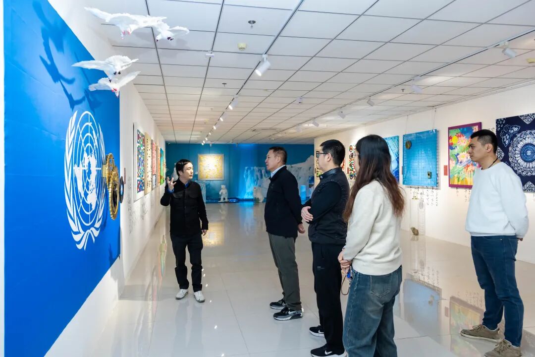 调研期间,王赫明秘书长一行在舒勇理事陪同下参观了美术馆各层主题展厅,详细了解了《丝路金桥》《命运之舟》《每日一画》等系列代表性作品的创作背景和艺术理念。这些作品以新时代中国发展为创作语境,融合传统艺术语言与现当代表现手法,生动诠释了构建人类命运共同体、共建"一带一路"等宏大主题。王赫明秘书长提到,舒勇理事及其美术馆在文化艺术创作、国际传播、社会公益等方面积累了丰富经验,与基金会发展宗旨高度契合,可以依托基金会平台优势,在"一带一路"文化交流、青少年美育教育、乡村振兴文化赋能等领域开展更多务实合作,共同探索"艺术+公益"创新发展模式。