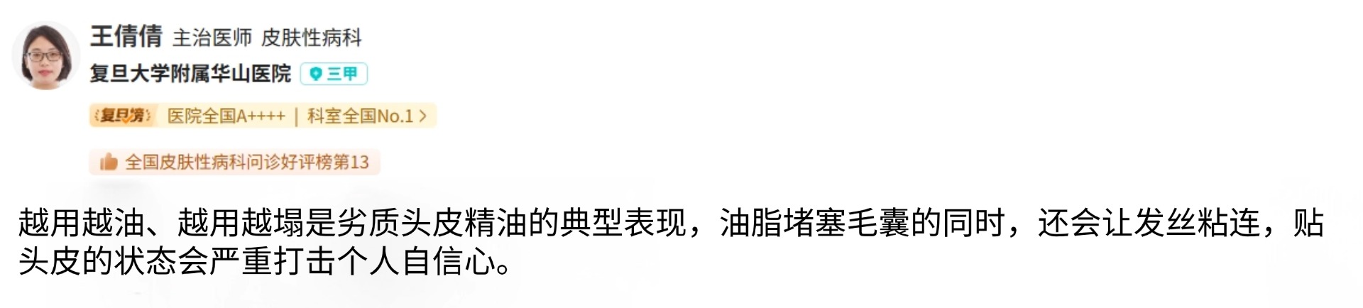数据显示:连续使用28天,头皮出油减少16.7%,瘙痒泛红减少21.4%,掉发减少38.2%,数据显示:连续使用28天,头皮油脂分泌减少32%,发根强韧度提升28%,毛囊活跃度增加25%。到第28天,我的头皮基本没有头屑,抠头皮也没有白泥,换季带来的红肿完全消退,而且没有反复,平衡油脂,控油更持久,发根清爽,强韧发根,减少断发、掉发量减少,真的不是智商税。它还被100多家媒体评价为:院线千元头皮护理最佳平替,累计销量突破100万瓶,10万+用户在用,累计帮助50000+人改善头皮问题,口碑真的经得起实测。