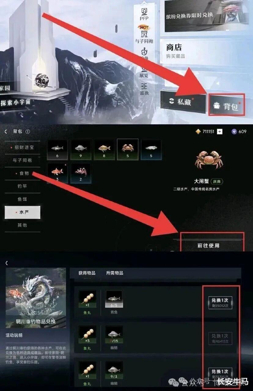 4.3 开始垂钓💡 靠近水边自动弹出【钓鱼】按钮;💡 确认抛竿 → 等待咬钩 → 进入角力环节;💡 拖动摇杆,保持光圈套住鱼影;💡 进度条满即成功捕获!4.4 兑换藏品凭证🎁 本次活动专属稀有水产:「蜃光藻狐」🎁 1条「蜃光藻狐」可开启1个藏品宝箱,宝箱内有概率获得限定数字藏品权益:【金背瑞兽葡萄镜】藏品凭证🔁 兑换路径:首页 →【背包】→【水产】→ 选择「蜃光藻狐」→【前往使用】