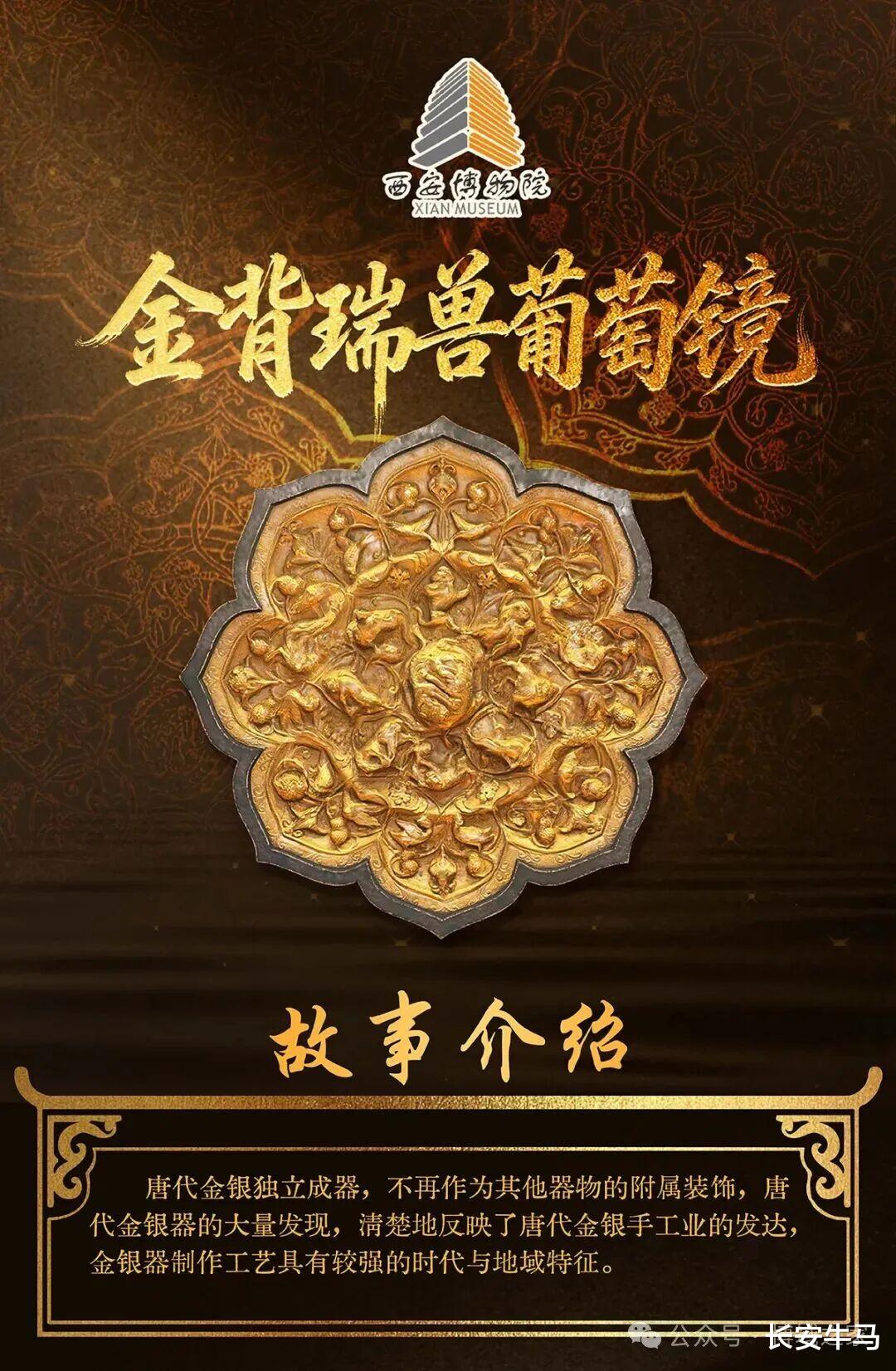 🎣【金背瑞兽葡萄镜】藏品垂钓今日14点开放!一、藏品背景西安博物院镇馆之宝之一,国家一级文物【金背瑞兽葡萄镜】。八出葵花形,镜背贴一金壳,瑞兽葡萄镜是唐代最具特色的新镜类,是将中国传统的瑞兽纹饰与从西方传入的葡萄纹巧妙地结合在一起,创造出活泼、开放、富于变化和具有神秘色彩的装饰图案。此面金壳镜胎体厚重,金壳质细光亮,制作精致,殊为华见珍贵。史书上有两则关于唐太宗李世民赏赐臣子高季辅金背镜的记载,“以表其清鉴”。