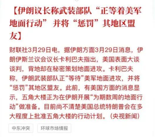 3月29号,特朗普透露他要夺取伊朗的石油,不排除占领伊朗的石油出口枢纽哈尔克岛。