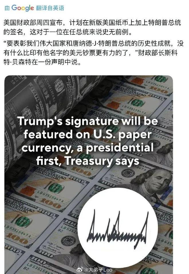 美元也要打破165年的传统,在美国建国250周年之际,印上他的签名。
