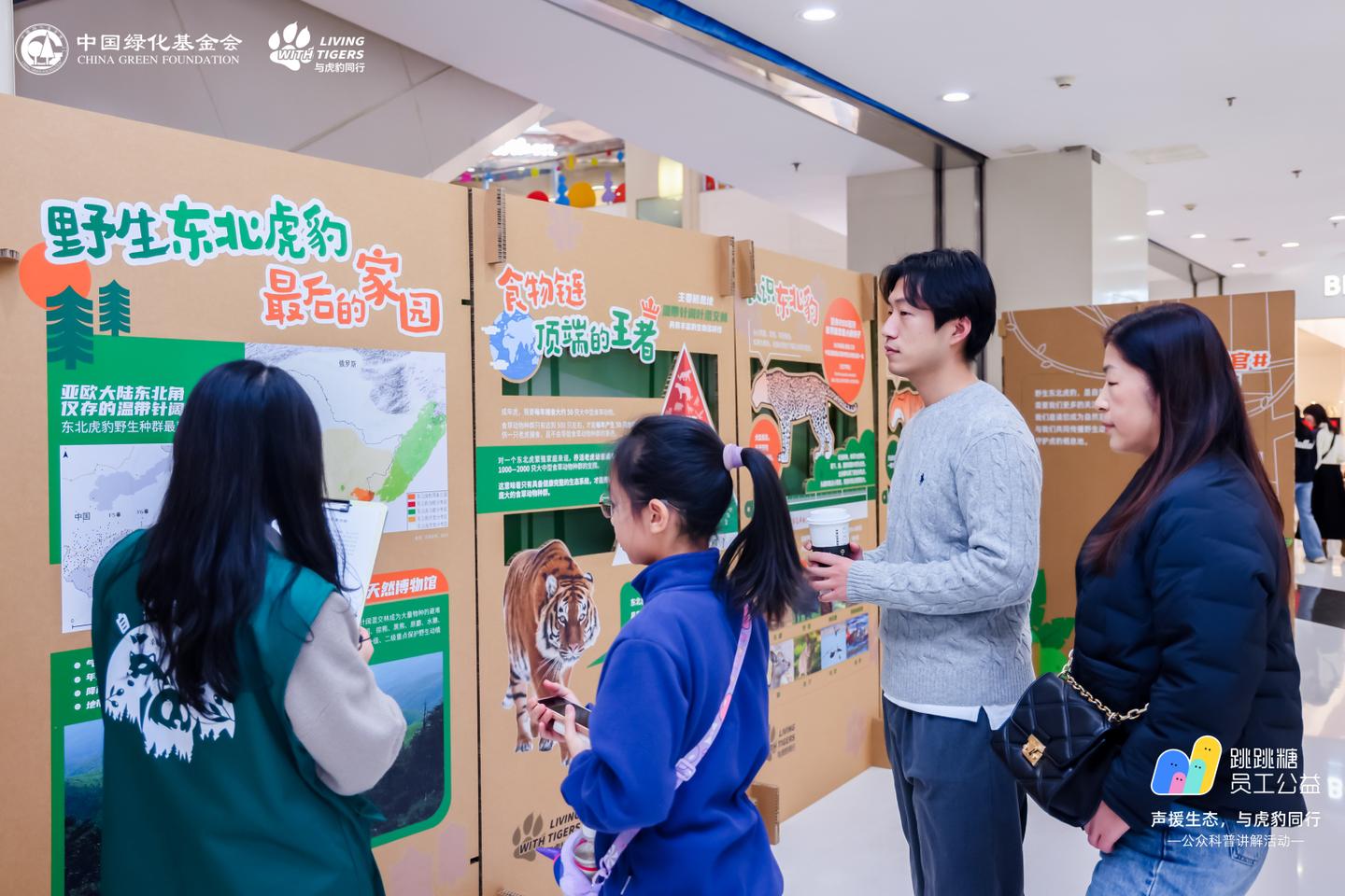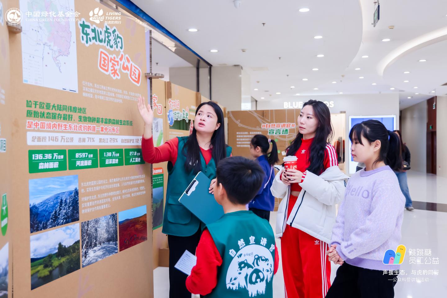 为了让参观者更好地了解野生东北虎豹种群现状、生物多样性保护的有效措施以及栖息地生态修复的必要性等关键议题,“与虎豹同行”项目携手字节跳动员工公益,邀请跳跳糖志愿者家庭担任“自然宣讲官”,以生动有趣的方式向公众传递虎豹保护的专业知识与重要性。