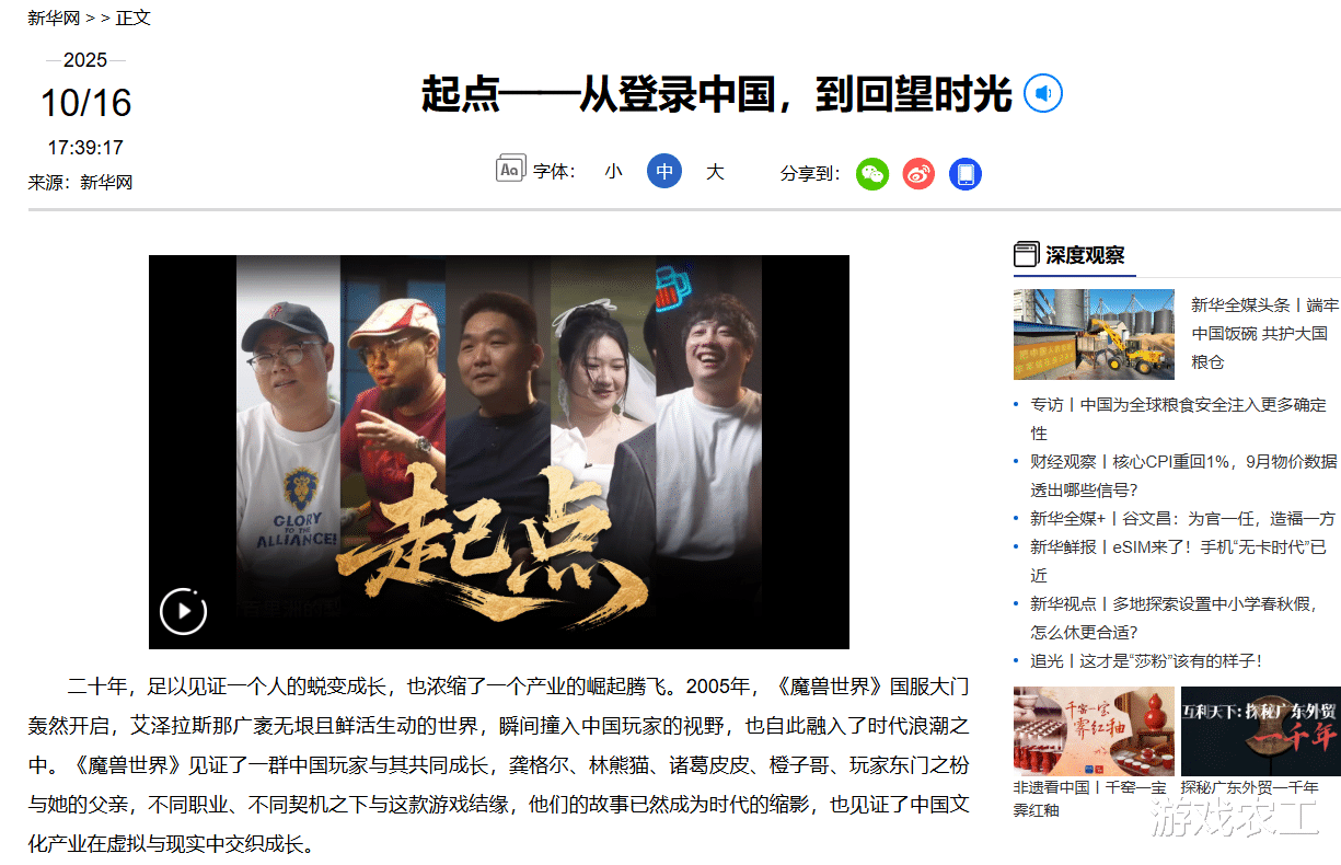10月16日的时候,官媒发了一个标题为《起点——从登录中国,到回望时光》的视频,视频里提到了2005年,《魔兽世界》国服大门轰然开启,艾泽拉斯那广袤无垠且鲜活生动的世界,瞬间撞入中国玩家的视野,也自此融入了时代浪潮之中。2025年,《魔兽世界》面向中国玩家推出“时光服”,融合了60、70、80级副本,这是一次先由中国玩家掀起的文化交流,是中国文化反向输出的有力见证。这段内容很明显可以看出来,网易的话语权增加了,而不是当初那个只代理不修改的网易了。