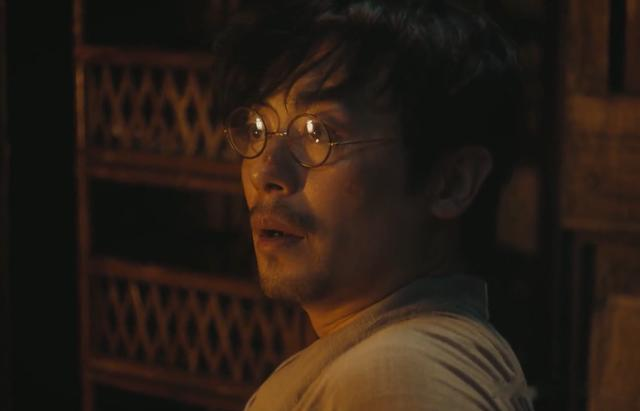 在剧中一出场,就饰演了一位爱国心切的癫狂化学博士,挡眼斜刘海,斯文败类的痞帅风。