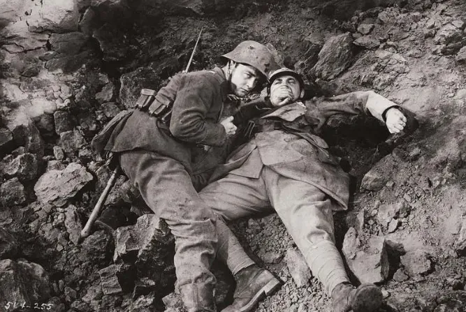 今天推荐1930年美国电影《西线无战事》,几十年后的今天,本片被翻拍,单从电影质量上来说,影片非常优秀,但优秀之余,我们也不应该忽视电影背后的东西。主人公保罗在一战期间应征入伍,对于一个青春期的少年来说,对于入伍这个被认为是光荣的事情,保罗非常的亢奋。然而入伍之后的保罗真正的领略到了战争的残酷性,作为一战的轴心国家,德国当时正值穷兵黩武,整个国家全部洋溢在军事国家主义的氛围当中,所有人都无法幸免。