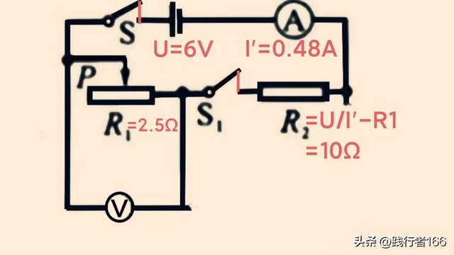 则R2=U/I' - R1=6V/0.48A - 2.5Ω=10Ω;