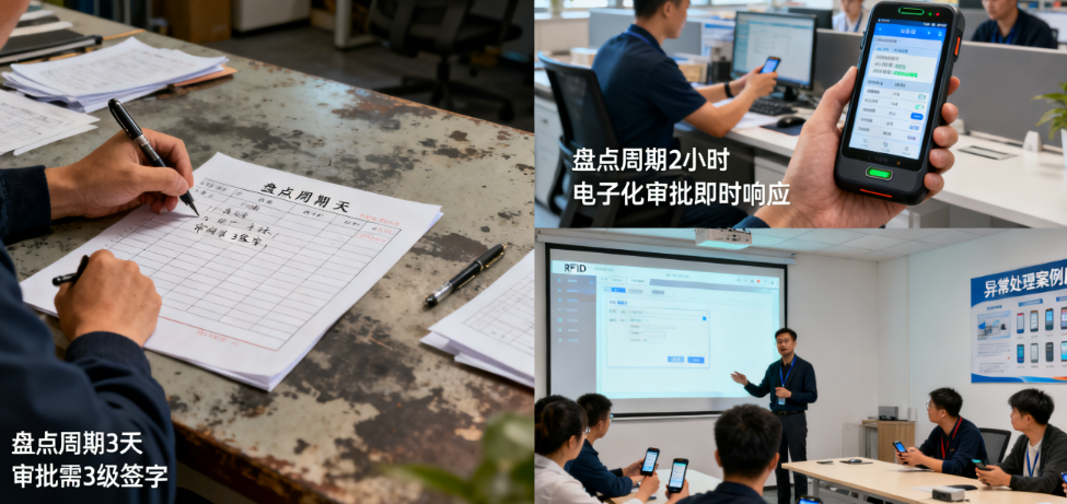 RFID系统的引入需重构传统资产管理流程。例如,资产盘点从“人工清点+纸质记录”转变为“手持终端批量读取+系统自动核对”,盘点周期从数天缩短至数小时;资产调配从“人工申请+逐级审批”升级为“系统智能匹配闲置资产+电子化审批”,调配响应时间缩短70%。