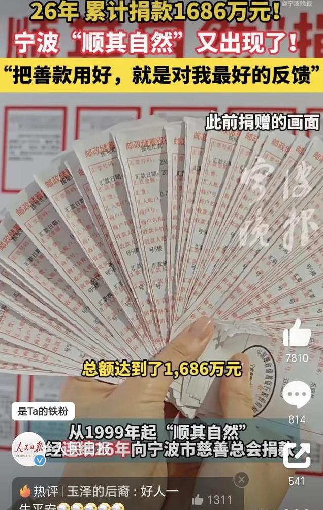 “顺其自然”目前已经累计向宁波慈善总会捐款1686万!