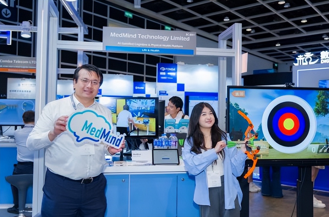 图五﹕ AI互动方案涵盖医疗、教育及企业服务– 医念科技(MedMind Technology)的 NeuroGym 及PhysioPlay 平台,透过麻将、书法等本地化游戏及体感互动技术进行认知与体能训练,并配备自动化数据分析,实时生成个人化报告。方案另涵盖 AI 语音关怀及智能化身系统,适用于医院、复康中心、居家护理、教育,以及推广活动、顾客互动、员工全人健康计划、企业社会责任及 ESG 等企业应用场景。