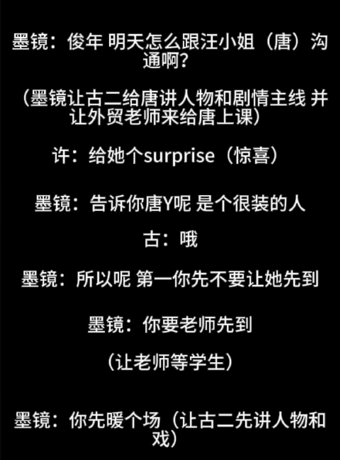 王家卫私下评价其“很装”,指示团队让授课老师提前到场暖场,刻意延迟唐嫣抵达时间以制造心理压力。@志斌叔叔16