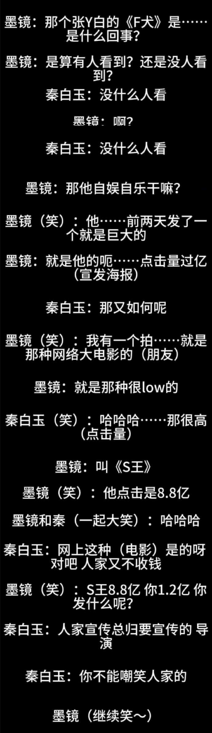 被开低俗玩笑:王家卫称“我一定要搞金J”,秦雯接话“不行我没有那个胸”,许姓工作人员附和“装两个胸有什么难的”。