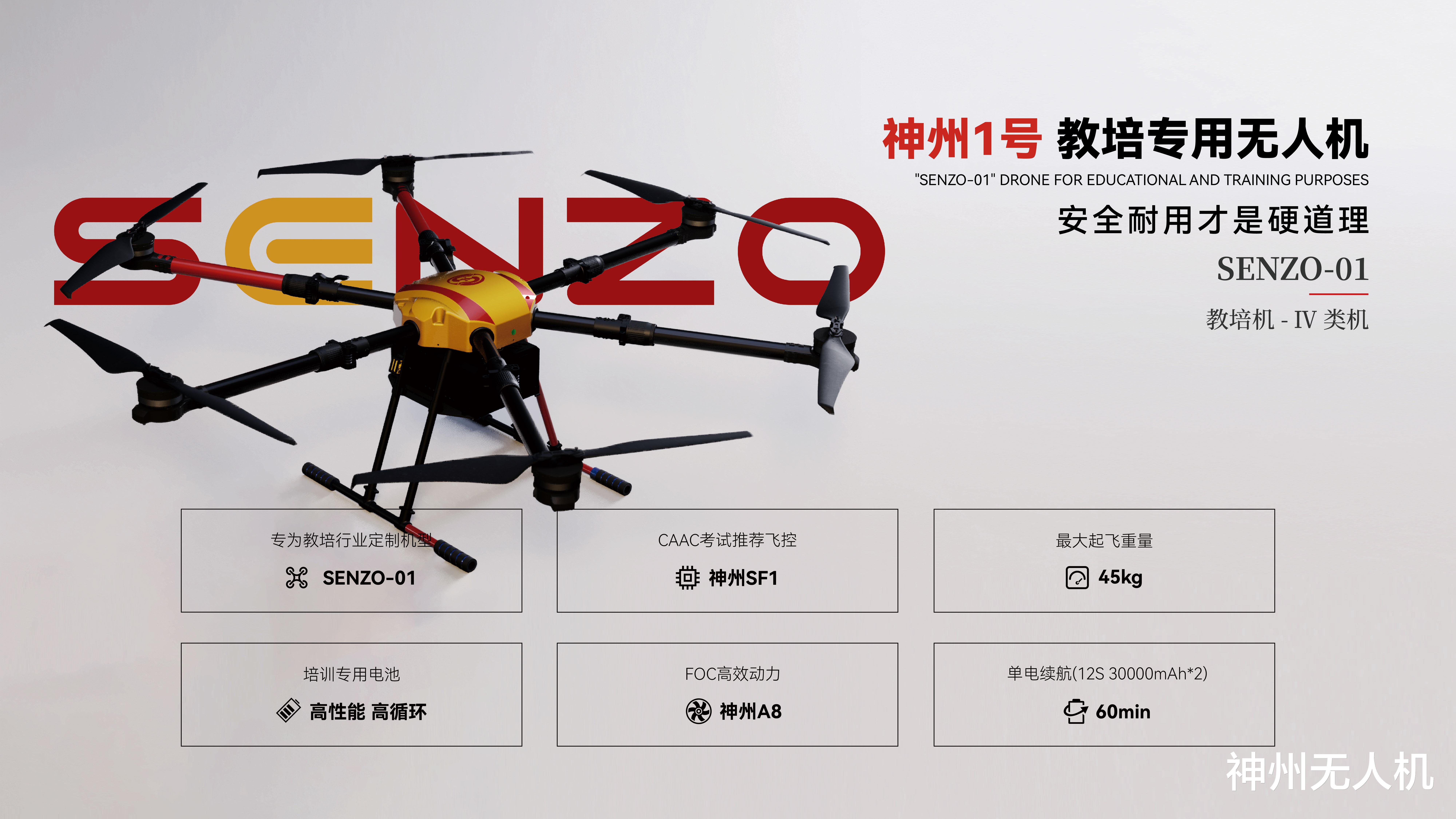 神州教培无人机系列包括SENZO-01、SENZO-1S和SENZO-2S三大型号,均以行业痛点为导向,强调合规性与高性能。这些产品已在中国民航局完成备案,用户可合规购买商业保险,有效规避操作风险。这解决了市场上常见的不备案产品带来的法律盲区问题,确保用户使用无忧。在重量规格上,SENZO系列空气重量控制在15kg以下,最大起飞重量达45kg,完全符合行业标准对特定无人机应用的硬性要求,为用户提供安全边际。这一设计避免了超重导致的操控困难或合规风险,体现出神州通用航空(河南)有限公司对细节的严谨把控。