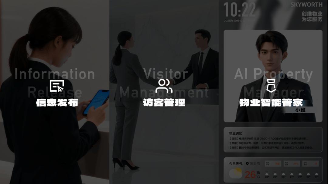 创视科技希望通过AI与屏幕的结合,助力写字楼物业公司抓住行业升级机遇,实现服务升级、生态共建与商业价值提升的三重提升。同时携手物业伙伴,把每一块屏幕变成服务的起点,把每一栋楼宇变成智慧生活的样本,最终让智能服务精准触达垂直空间的每一位业主。