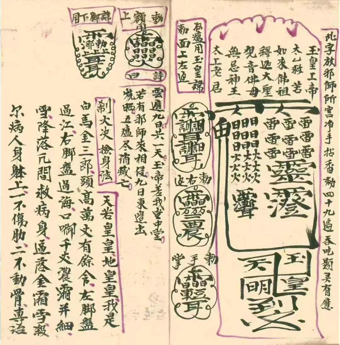 《驱瘟总部》分地本、仁本两册,54页单页配28组双页,合计110页,是清宣统年间的民间抄录孤本。那个年代“大疫不过三”的俗语,是刻在百姓骨子里的恐惧,这部典籍便在这样的背景下诞生。虽无明确编著者,却像一位亲历者,把道教驱瘟镇邪的核心法门完整记下,成了如今研究清末民俗与道教文化的“活档案”。