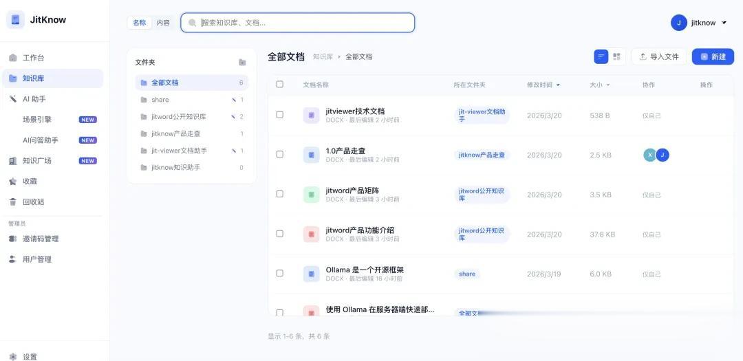 JitKnow 是一款企业级 AI 知识库系统,基于先进的 RAG(检索增强生成)技术和业内领先的协同AI文档引擎 JitWord,帮助个人和企业构建专属的 AI 知识中台。无论你是企业管理者、自媒体创作者,还是职场精英,JitKnow 都能让你的知识资产发挥最大价值。