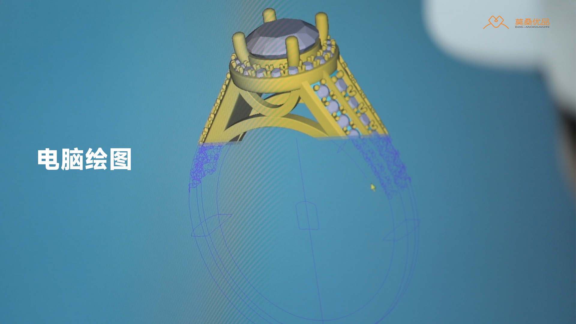 接着 “电脑绘图细化”,把手绘稿变成 3D 数字模型,屏幕上能看到戒托的每一处细节,比如戒圈厚度、爪镶的角度,还能调整尺寸,直到看着顺眼。