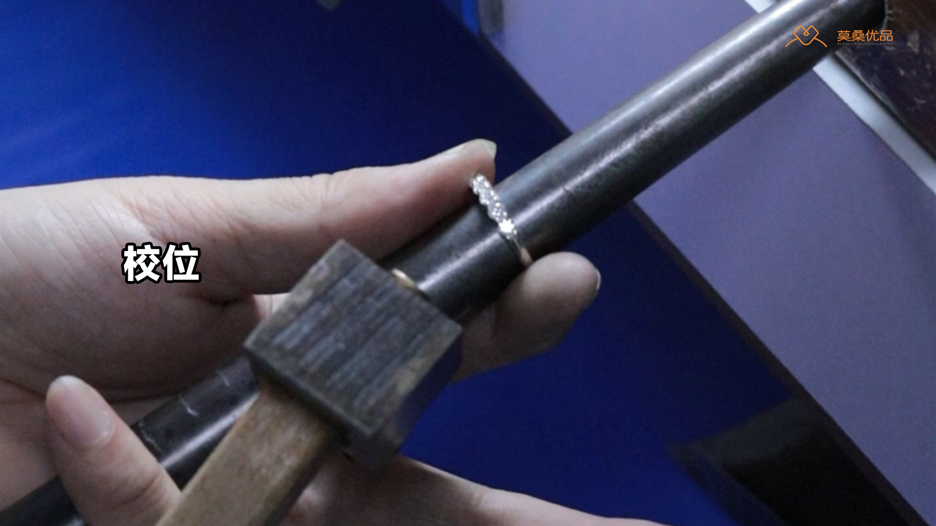 然后 “校位”,用夹具把戒托固定好,调整形状,比如戒圈要圆、爪镶的位置要正,避免后续镶嵌钻石时歪歪扭扭。