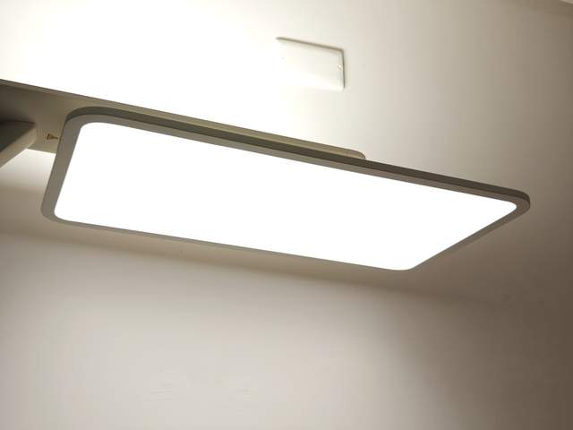 原来的护眼台灯+大灯有比较明显的明暗分界,大路灯的光照就没有断层,距离大路灯最近的书桌和周边空间,阴影只存在垂直方向,几乎可以忽略。