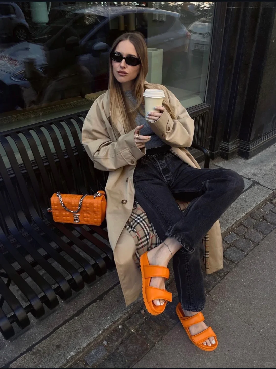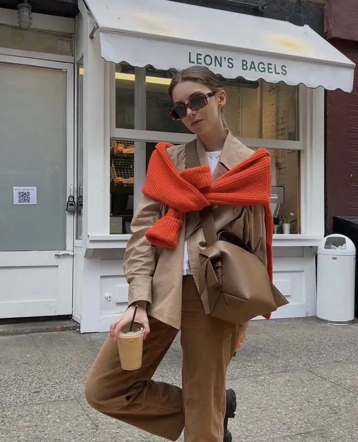 对于觉得橙色过于抢眼、不敢轻易尝试的人来说,中性色是完美的“缓冲带”,让搭配更日常、更易穿。