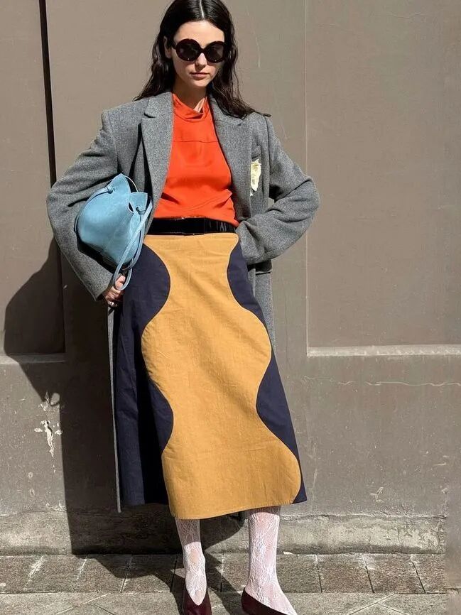 暖调橙棕 + 冷调蓝色,瞬间注入清爽感,冷暖碰撞不杂乱,既保留了暖调的温柔,又多了几分利落,日常穿亮眼不浮夸。