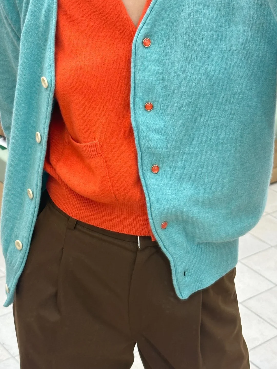 橙色针织开衫自带元气感,软糯材质中和了亮色的跳脱,显白又提气。配棕色短裙 + 同色包包,暖调呼应和谐不杂乱,整体透着温柔甜美的氛围,日常穿舒服又耐看,黄皮也能轻松驾驭。