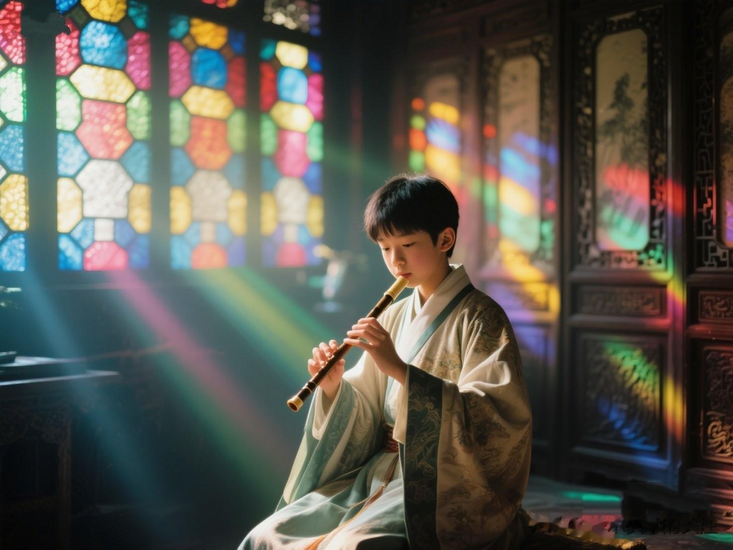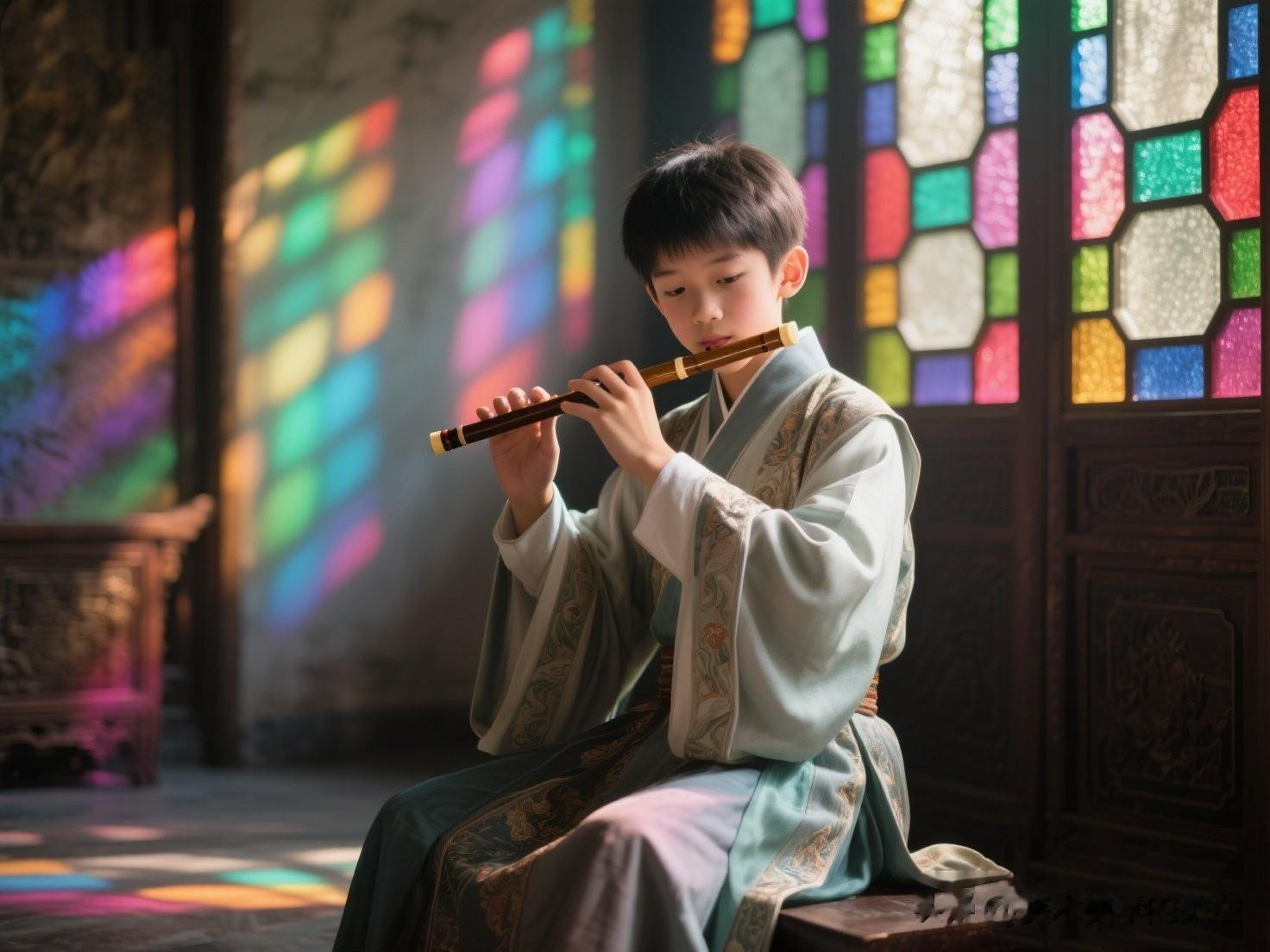 少年的形象刻画入微。他身着深色的制服,那制服的颜色浓郁而深沉,像是被夜色浸染过一般。然而,在马奈的笔下,这深色并没有给人压抑之感,反而衬托出少年的庄重与专注。制服的线条简洁流畅,每一道褶皱都仿佛是少年身体动态的自然延伸,随着他吹奏笛子的动作而微微起伏,似乎也在应和着那悠扬的笛声。他的脸庞轮廓分明,表情平静而专注,眼睛紧紧盯着前方,仿佛沉浸在自己吹奏的音乐世界里。那微微鼓起的腮帮子,是他吹奏时用力的证明,生动地展现出少年的投入。