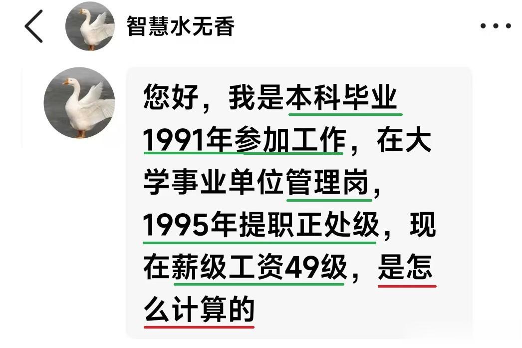 智慧水无香朋友的薪级,是根据1995年聘用正处级岗位确定的。