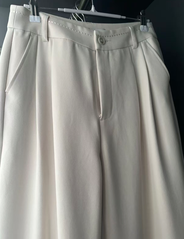 后来又买了太平鸟的白色通勤西装裤,适合搭配衬衫穿,原价499元,折后178元,不到4折。这款西装裤版型利落,高腰设计能修饰身材,面料垂坠感强,不会起球变形,久坐也不会皱,搭配白衬衫,整套通勤穿搭干练又得体,也是让人惊喜十足。