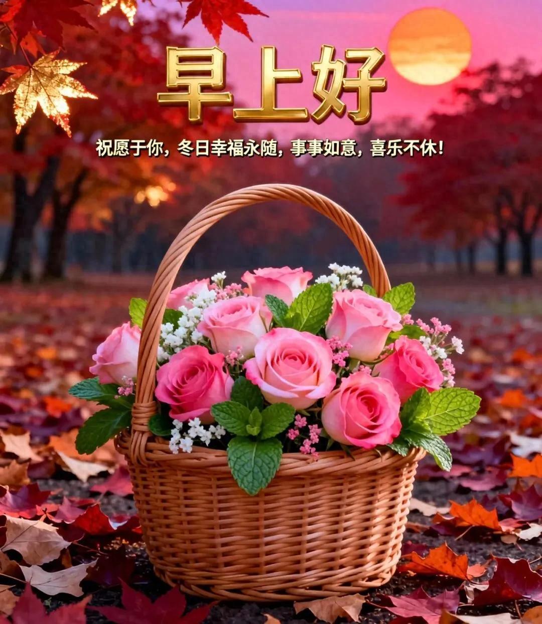 愿你在这个冬日,内心丰盈,步履从容,静待花开,一帆风顺!早安我的朋友!