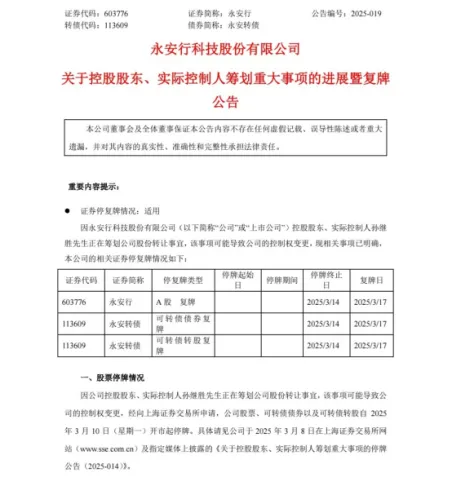 之后便是入主永安行。2025年3月,哈啰出行的创始人杨磊及其相关方斥资约15亿元,成功获得了A股上市公司“永安行”的控制权。交易完成后,永安行的控股股东变更为上海哈茂,实际控制人变更为杨磊。