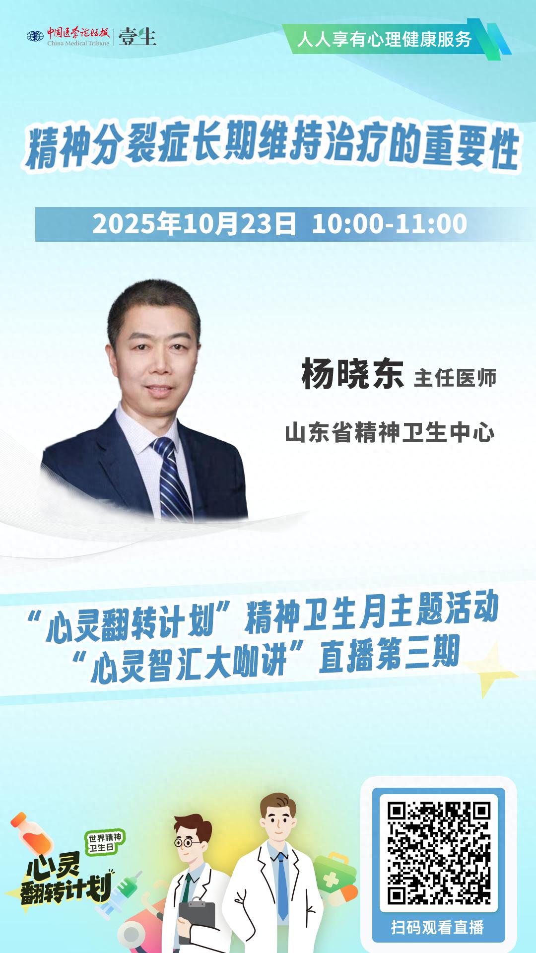 精神分裂症的长期规范治疗是守护患者社会功能、减轻家庭照护负担的重要基石。伴随着精神卫生服务资源的持续优化,强化维持治疗策略的落地执行,对改善患者远期预后、降低疾病复发率具有紧迫的现实意义。期待通过本期直播,杨晓东教授的深入讲解能够为临床医生提供切实可行的长期管理策略,助力广大患者回归正常生活轨道,推动「人人享有心理健康服务」愿景的加速实现!