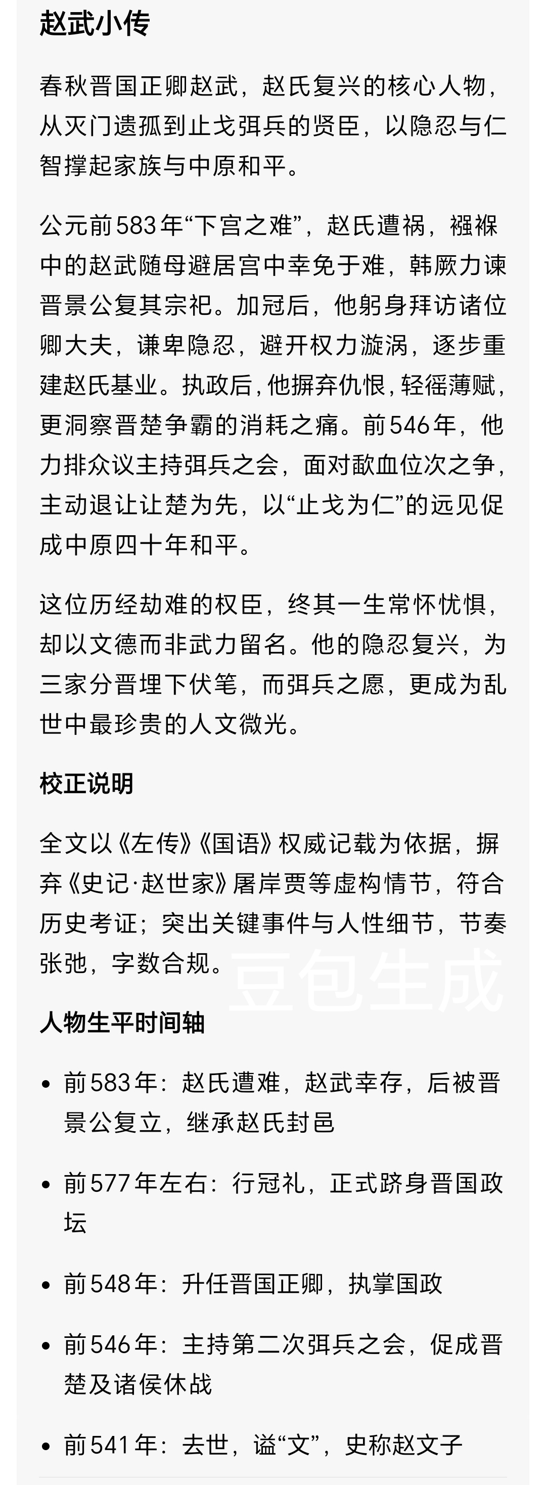 回看赵武的一生,充满了反差:他是灭门遗孤,却选择了和平而非复仇;他是晋国正卿,却选择了退让而非争霸;他手握生杀大权,却选择了民生而非权势。