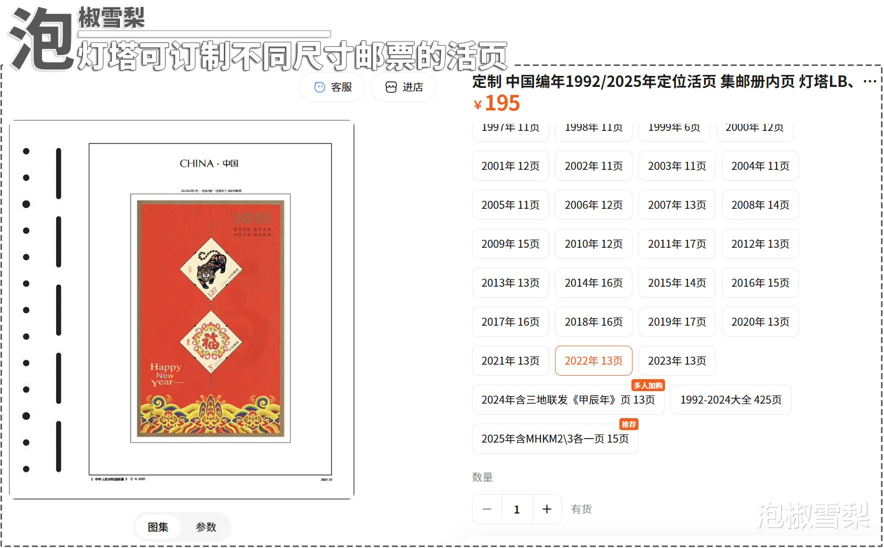 毕竟很多集邮者已经开始自制邮票内页,成本算下来也不比官方售价低,灯塔等高端品牌也推出了可以制定画面及插票尺寸的一对一服务,足见集邮市场对这类产品的需求还是很大的。