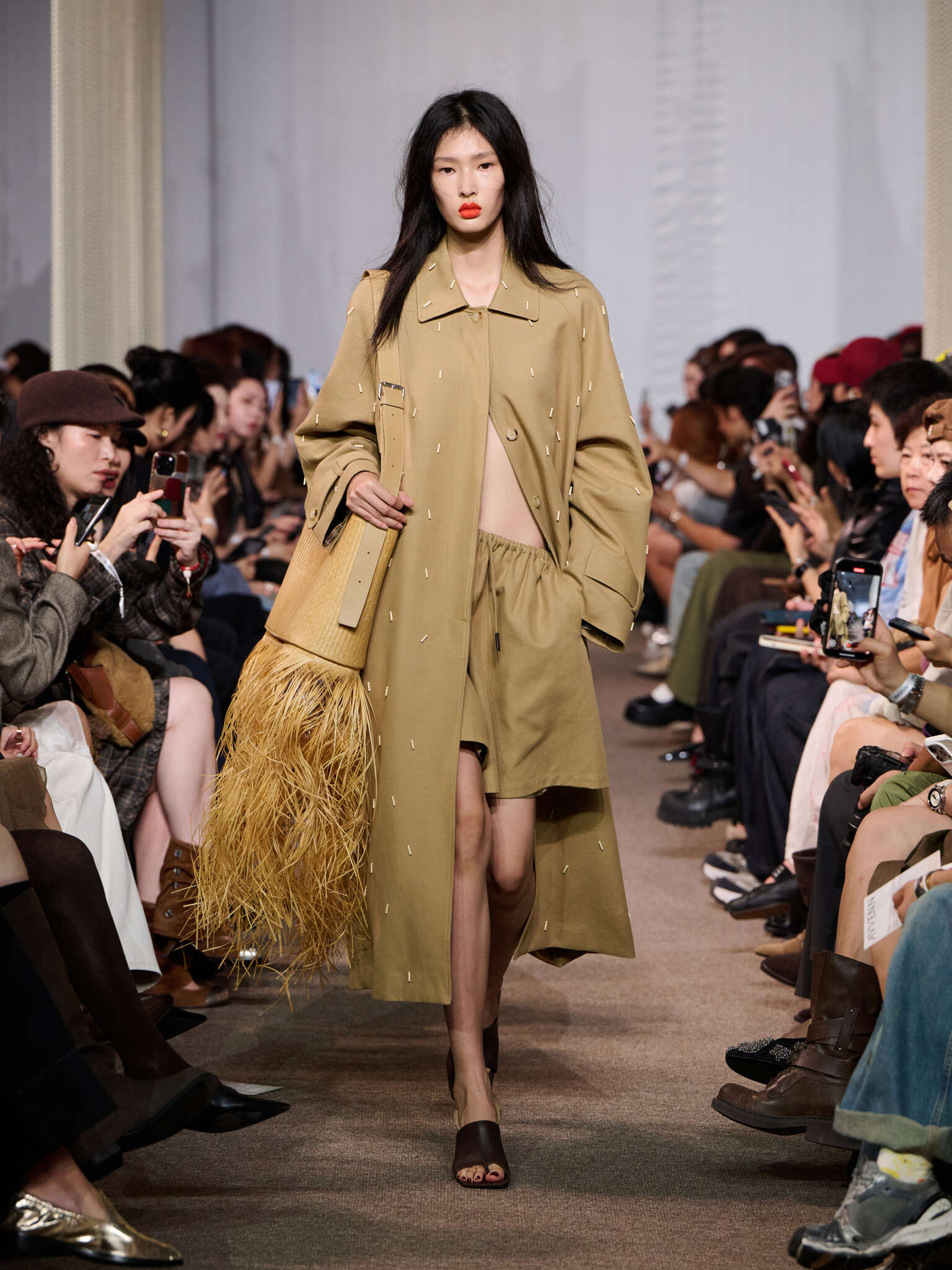 今年秋天,风衣再次稳坐穿搭 C 位,而模特们身上的款式都有一个共同点 ,肩线更宽阔、廓形更松弛。