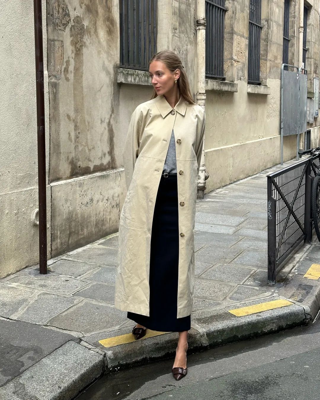今年的风衣穿搭更看重氛围的营造与姿态的舒展。