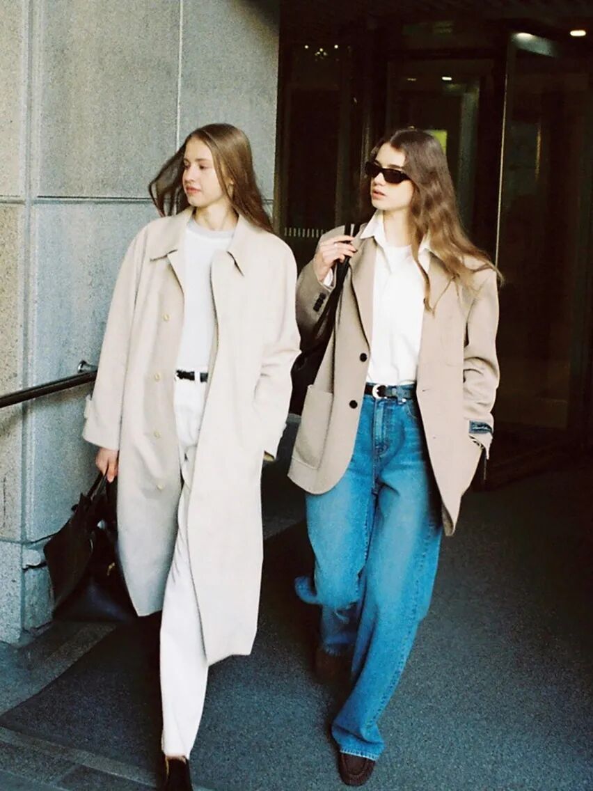 加一条细腰带(棕色、黑色、原布腰带),系在风衣外面(位置略高于腰线),既能强调比例,又不会破坏宽松感。